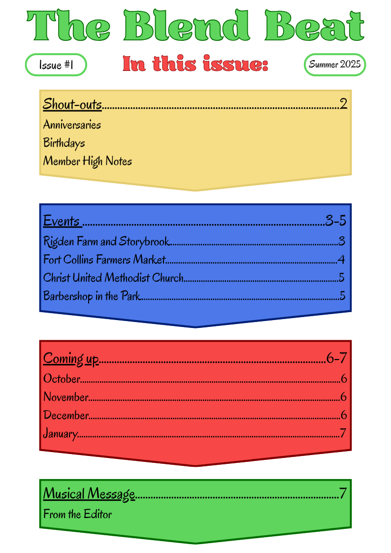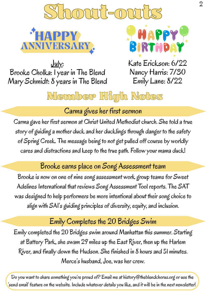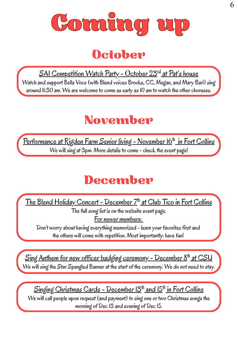 An RSS feed (or news feed) is a means by which you can stay informed about what's going on at The Blend Chorus without having to regularly visit the website.