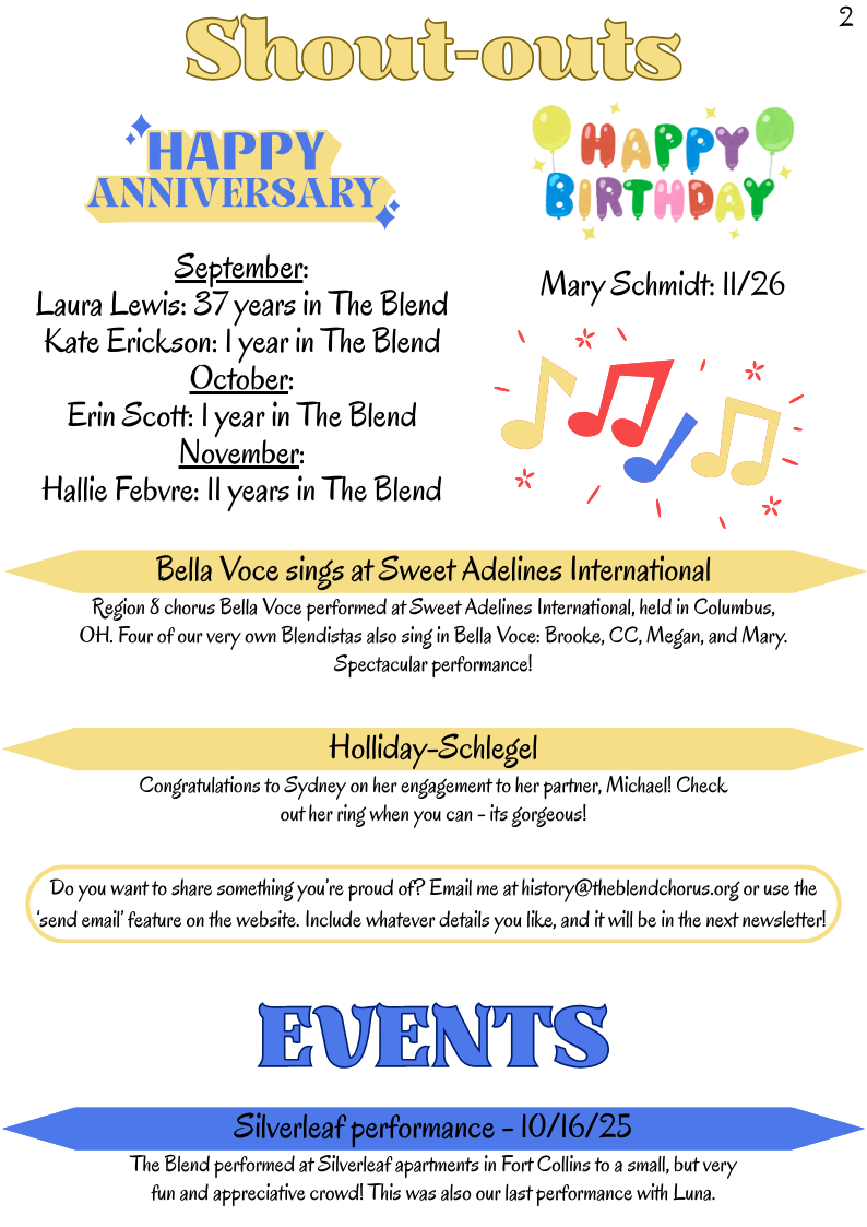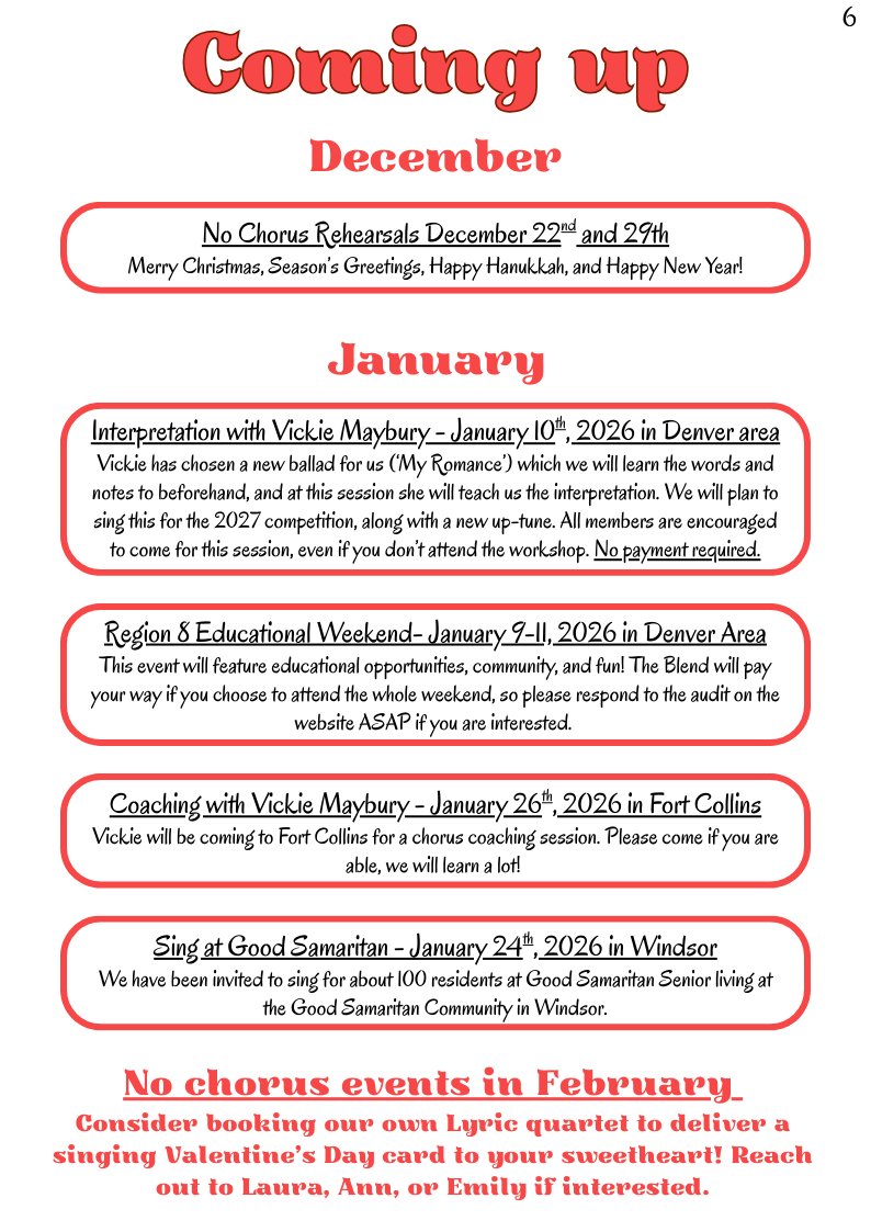 An RSS feed (or news feed) is a means by which you can stay informed about what's going on at The Blend Chorus without having to regularly visit the website.